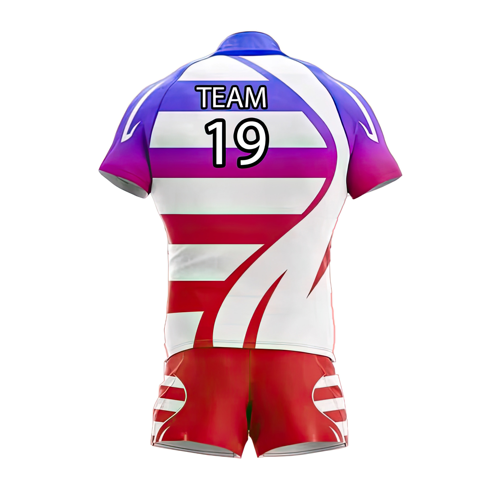 Crafted from a premium blend of polyester and spandex, our jerseys are designed to withstand the rigors of rugby. The fabric is lightweight, breathable, and moisture-wicking, keeping you cool and dry throughout the game. Its four-way stretch allows for unrestricted movement, ensuring maximum performance and comfort.